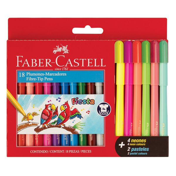 MARCARCADOR FABER FIESTA X 12 UN + 4 NEÓN + 2 PASTEL - ART 555336